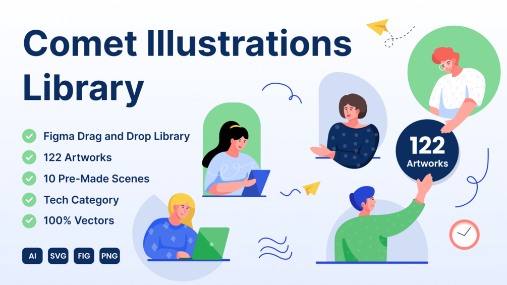 Introducing the Comet Illustrations Library, a carefully crafted collection of high-quality illustrations designed to enhance your creative projects effortlessly. With a focus on drag-and-drop simplicity, this library empowers designers to build stunning visuals in seconds.